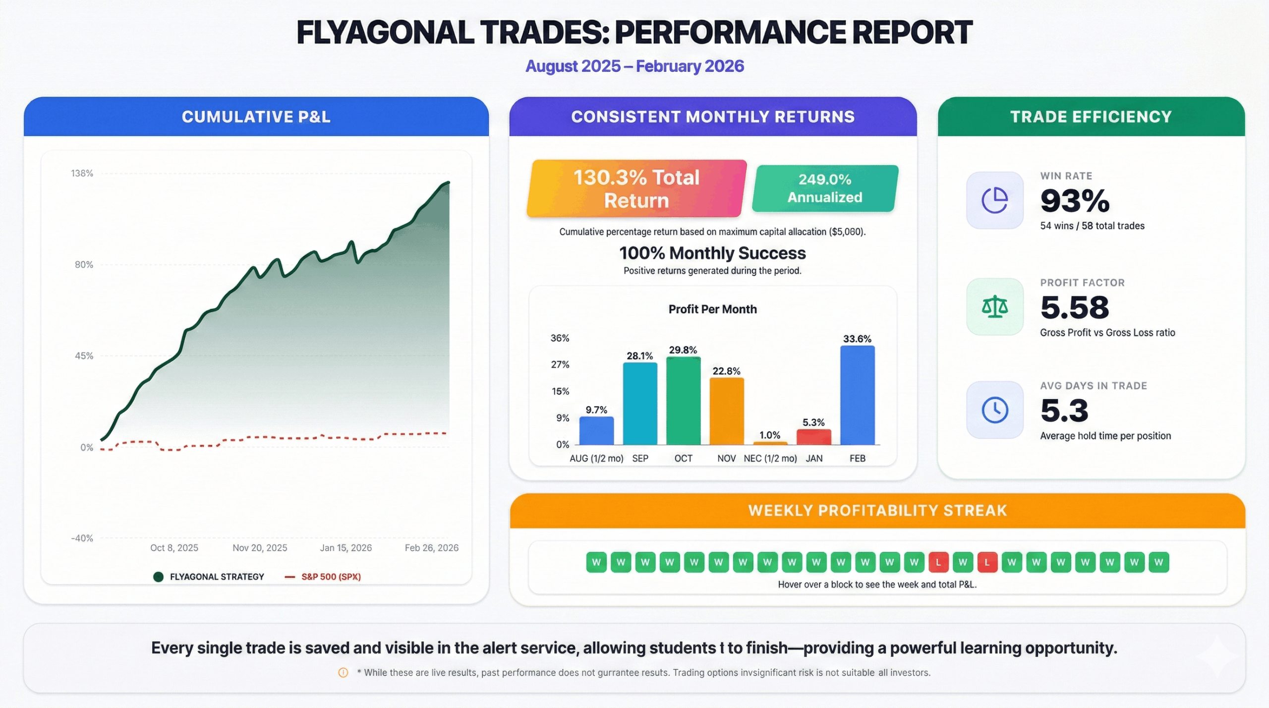 The Flyagonal is the most consistent and resilient income strategy I’ve traded in over 30 years — refined through advanced AI modeling and proven in live market conditions, with strong historical performance you can review below. For many traders, it has become a structured way to generate supplemental income to support everyday life or retirement.